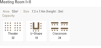 | Meeting Room I+II | KRW 600,000 | KRW 800,000 | KRW 1,000,000 |